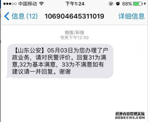 這個(gè)不是詐騙短信啊,辦理完戶籍業(yè)務(wù)會(huì)有短信回訪調(diào)查滿意度的短信,銀川公安戶籍服務(wù)部門為了提高服務(wù)水平,讓群眾辦理業(yè)務(wù)滿意順利,通過利用短信群發(fā)平臺(tái)收集服務(wù)滿意度。如果您收到了這樣一條信息記得給他們打分。